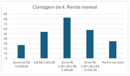 A concentração de respondentes está no Sudeste, especialmente em áreas urbanas, o que pode refletir tanto uma limitação da amostra quanto a realidade de maior consumo da região. Isso sugere que o Sudeste deve ser a porta de entrada para o lançamento, mas com a necessidade de ampliar a análise para outras regiões a fim de explorar todo o potencial nacional. Entre os respondentes, 83 declararam renda mensal entre R$ 2.001,00 e R$ 5.000,00, 58 estão na faixa de R$ 5.001,00 a R$ 10.000,00, 54 afirmaram receber até R$ 2.000,00, 35 preferiram não informar e 27 possuem renda superior a R$ 10.000,00.