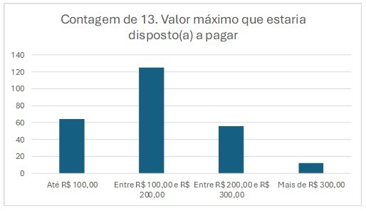 Há um padrão de preferência em relação ao preço da Mi Power. A faixa mais aceita está entre R$ 100,00 e R$ 200,00, concentrando aproximadamente 125 pessoas. A faixa de R$ 200,00 a R$ 300,00 agrupa cerca de 55 pessoas, indicando um segmento disposto a investir um pouco mais. Por fim, o grupo que aceita pagar acima de R$ 300,00 é menor, mas representa um nicho com potencial para ofertas premium ou serviços exclusivos.